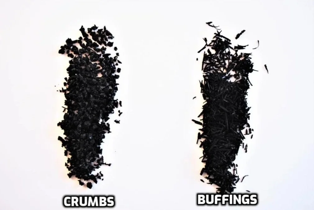 These treads are processed into rubber buffings rather than the ground crumb rubber often used by other manufacturers. The result is a material that is smoother, cleaner, and more uniform, allowing it to bond more effectively during production.